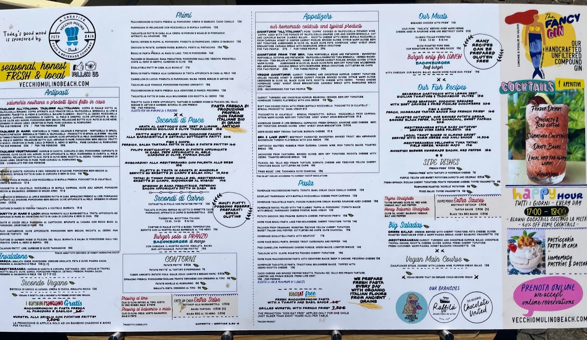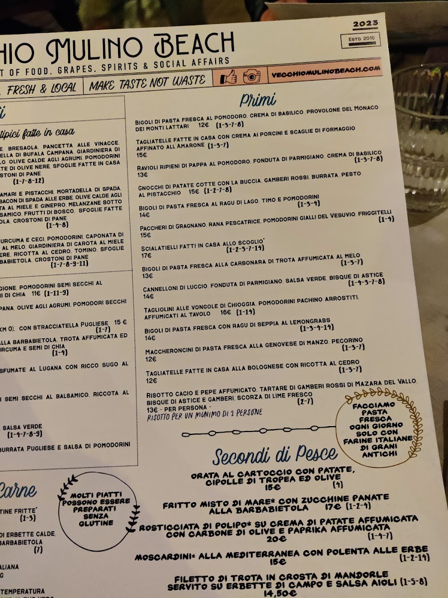 The menu at Vecchio Mulino Beach showcases a delightful array of dishes, featuring fresh seafood and homemade pasta that captivate the palate. Diners rave about the octopus salad, tender and vibrantly dressed, and the simple yet flavor-packed tomato pasta. For those with a sweet tooth, the unique presentation of the tiramisu as a blooming plant is both a visual delight and a culinary wonder.